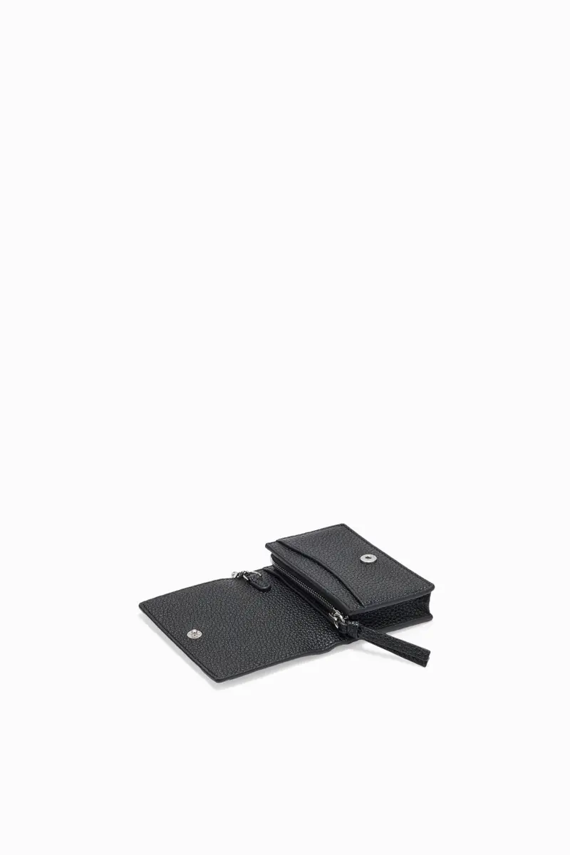This card holder features a grained texture, a GANNI Butterfly hardware logo and a keychain ring.