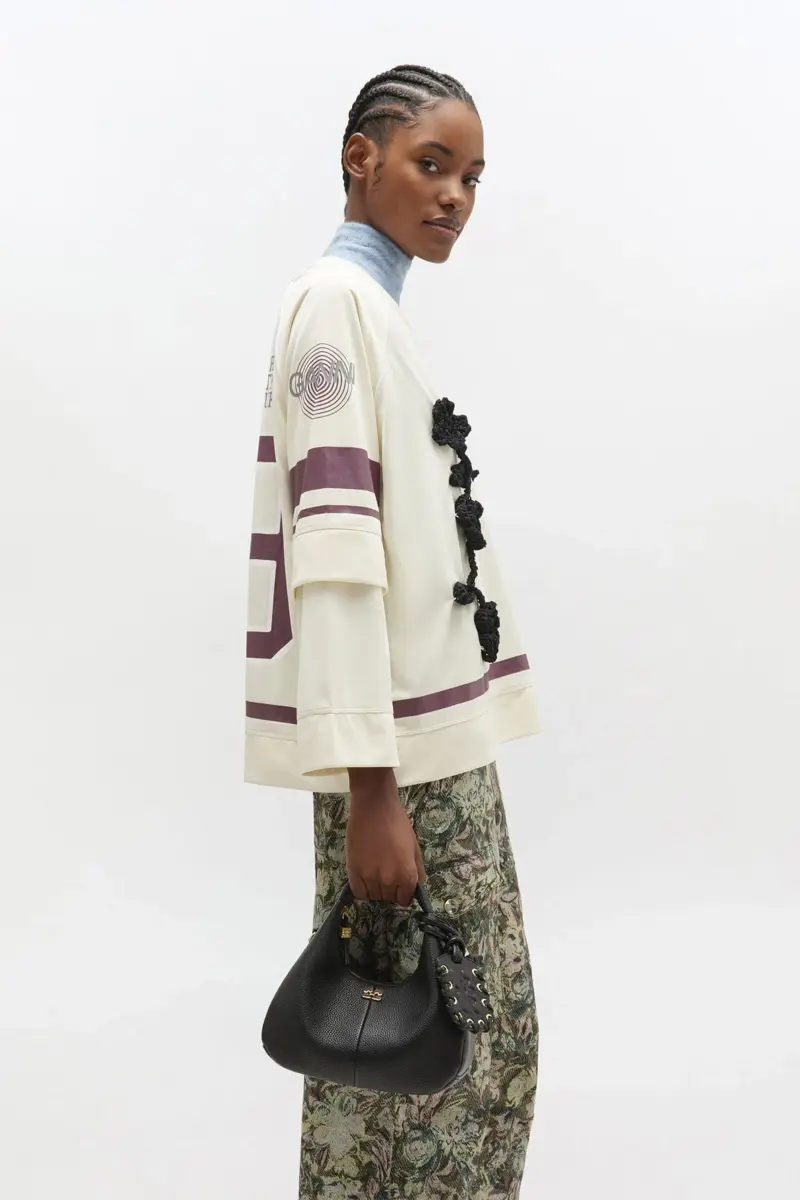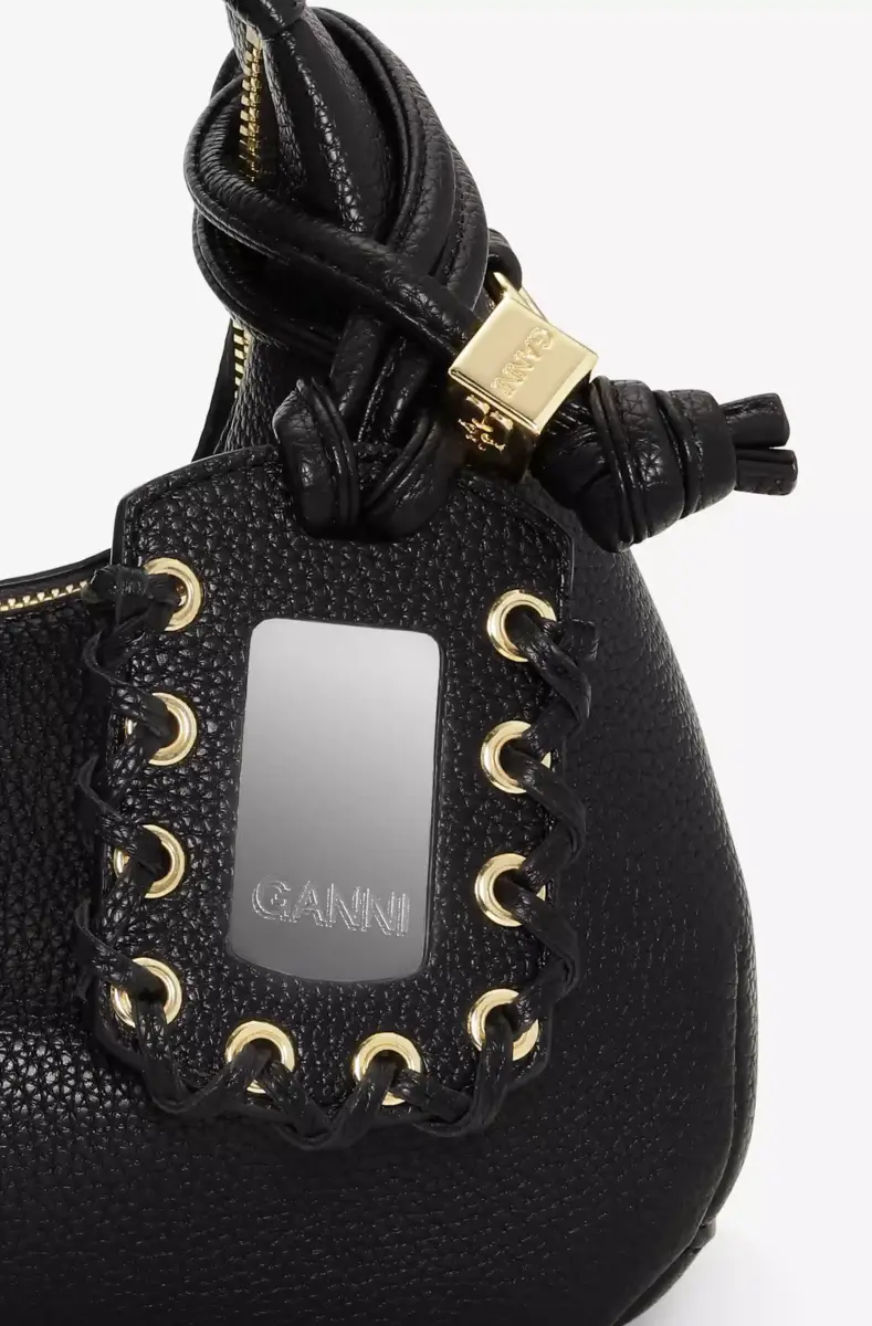 This bag features a top handle, adjustable and removable strap and a zipper closing. The bag has a mirror hangtag and an internal pocket.
