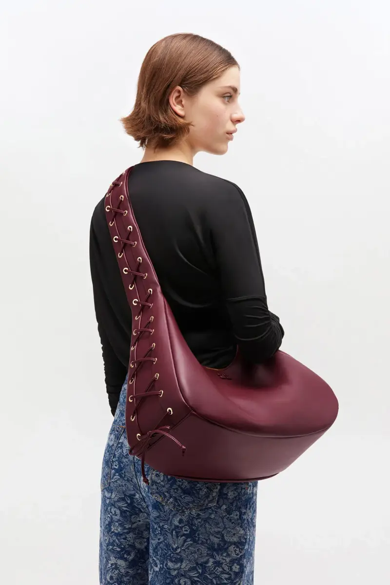 This bag features a shoulder strap, a zip closing and gold-tone GANNI Butterfly logo. The bag has a mirror hangtag and inside zipped pocket.