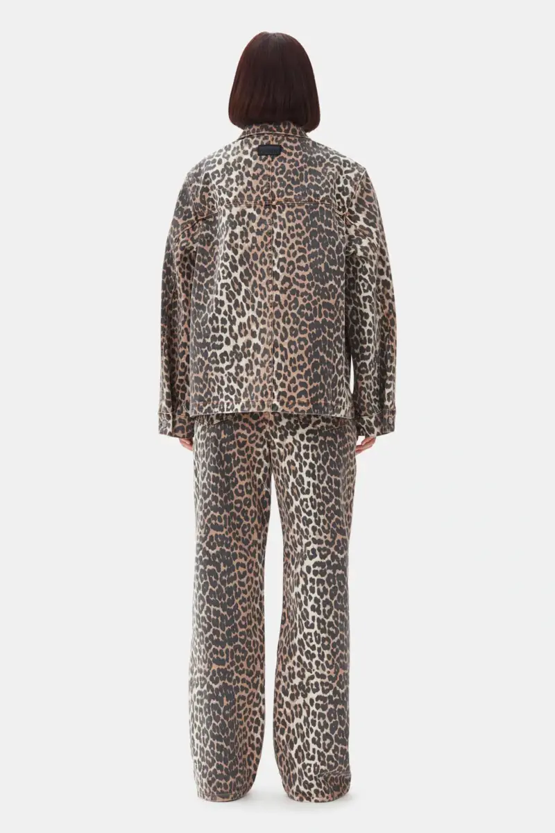 This jacket in leopard print features a collar, button closure, 2 front pocket, 2 side pockets and a GANNI logo at the back.