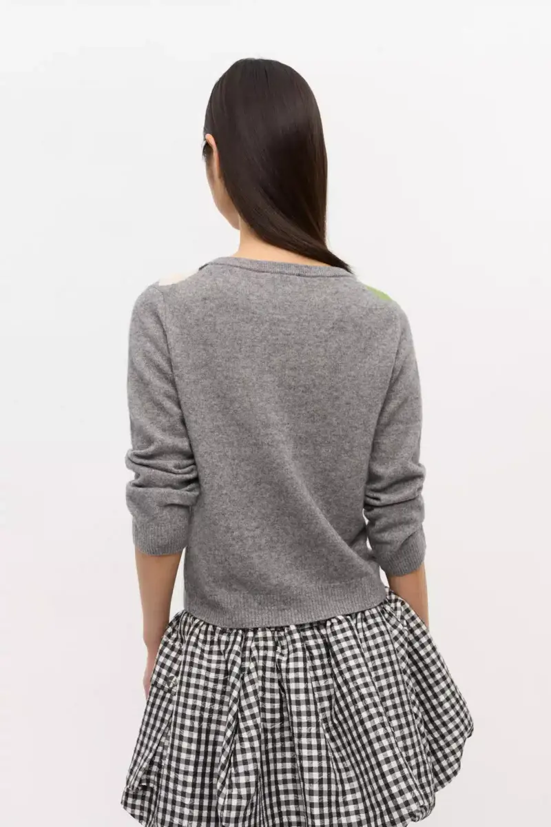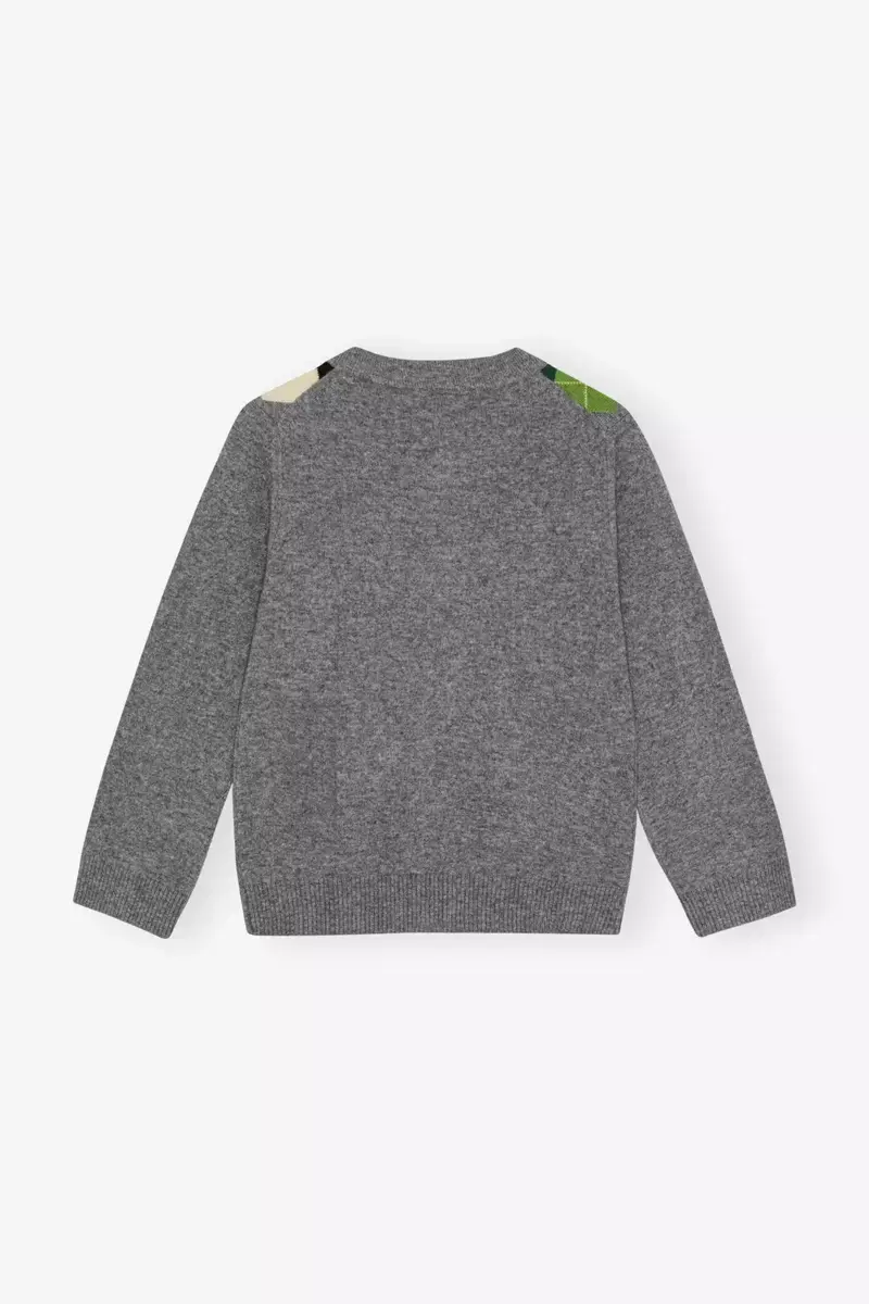 This cardigan features a check pattern in multiple colours. It has a silver-tone button closure, two front pockets and an embroidered GANNI logo.