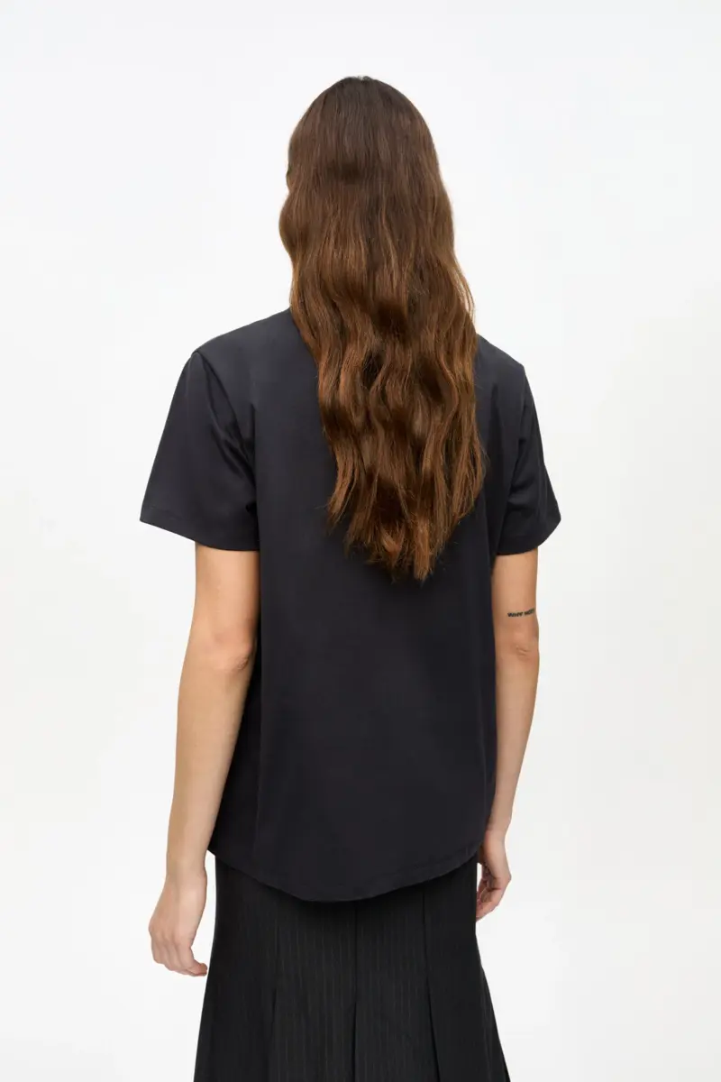 Black Basic Jersey Green Cherry Relaxed T-shirt