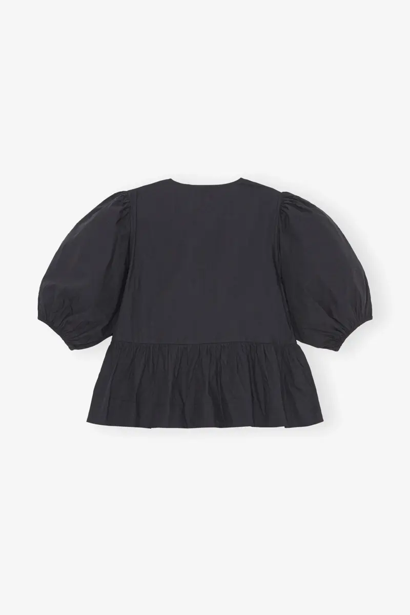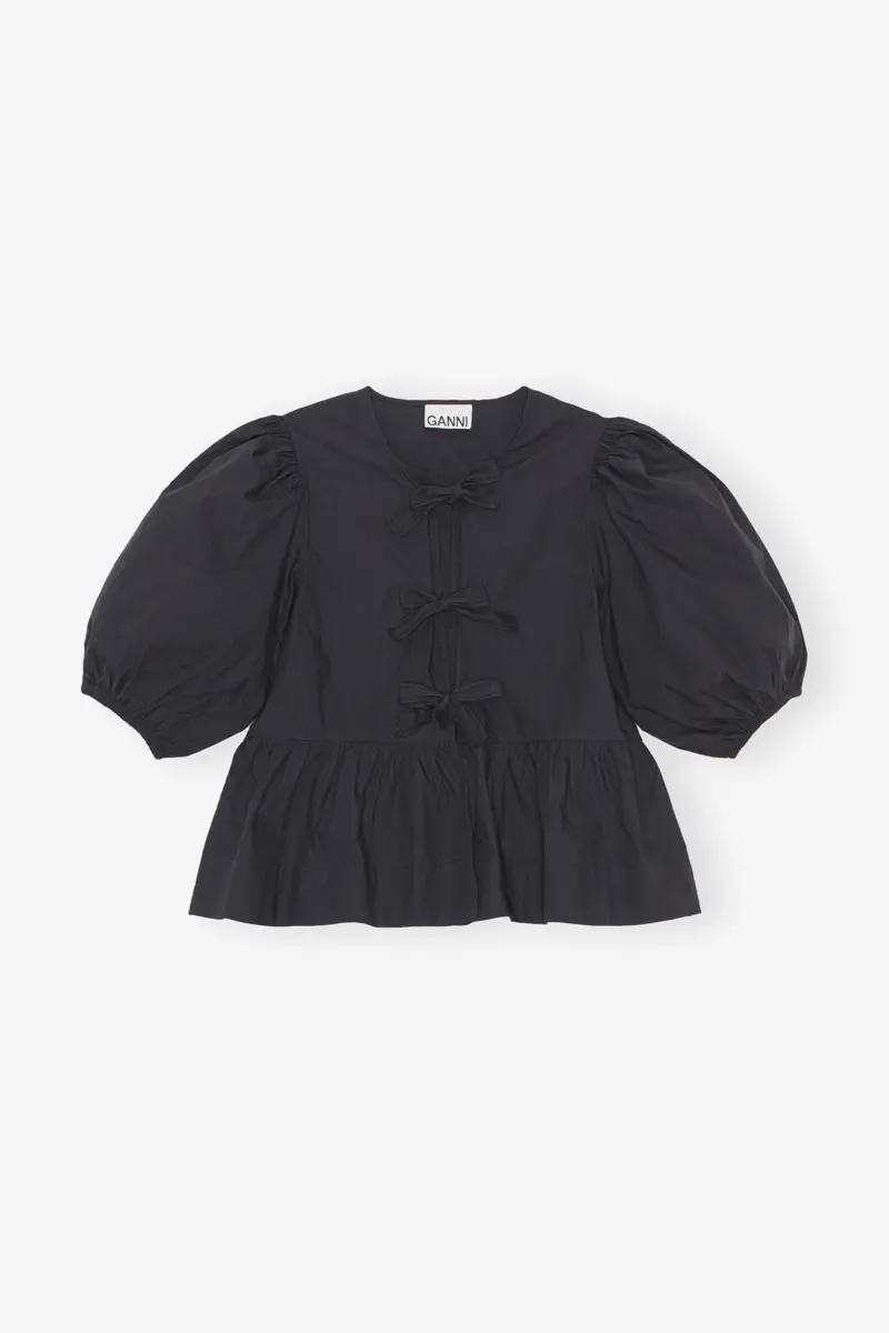 Cotton Poplin Peplum Tie Blouse