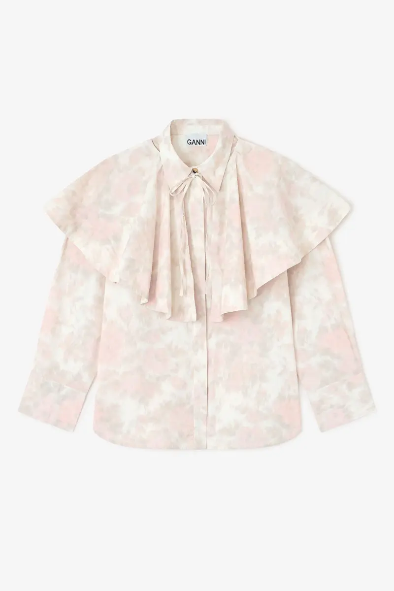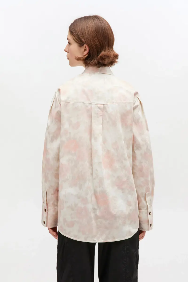 This shirt features a romantic floral print, removable circle collar, classic collar, button-front closure and 1 chest pocket.