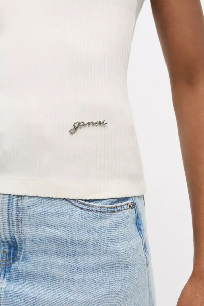 This top features a fitted silhouette, a scoop neckline, and an embroidered GANNI logo.