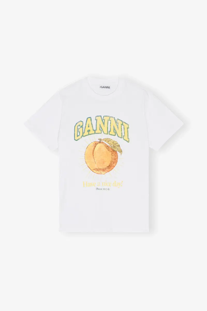 This Relaxed Peach T-shirt is made from organic cotton. The t-shirt is designed for a relaxed fit and features a crew neckline, short sleeves and a graphic GANNI print.