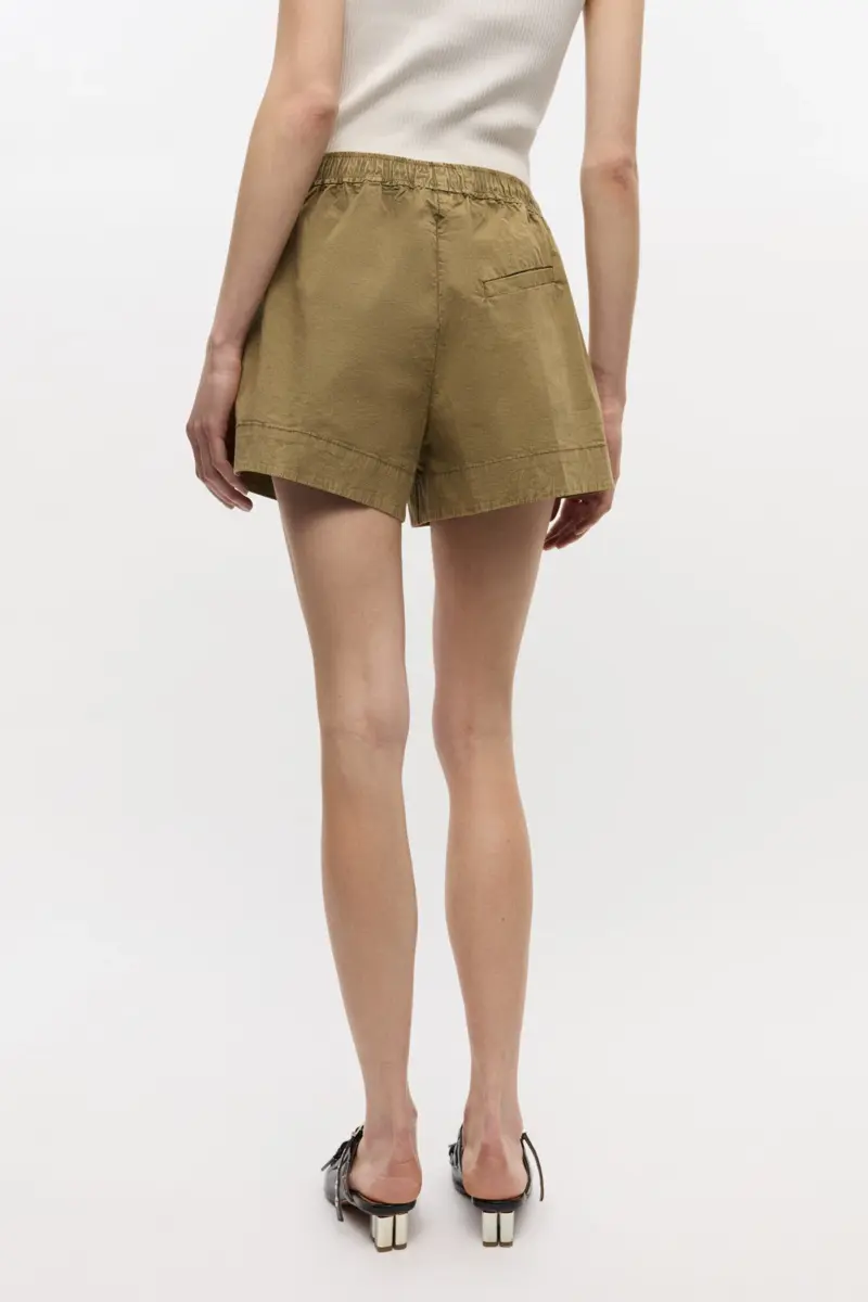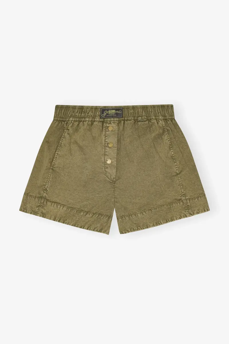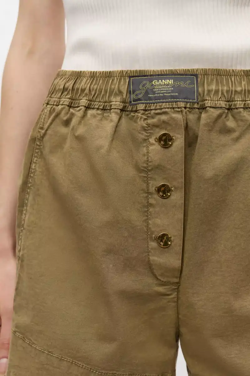 These shorts feature an elasticated waistband for an adjustable fit and a buttoned front.