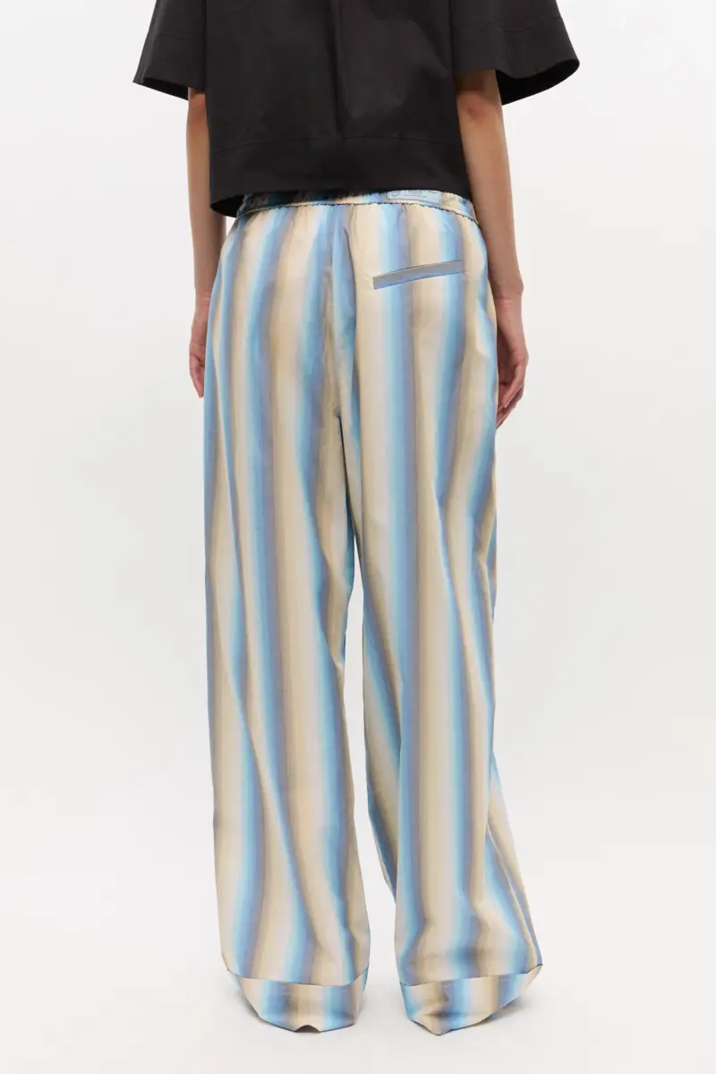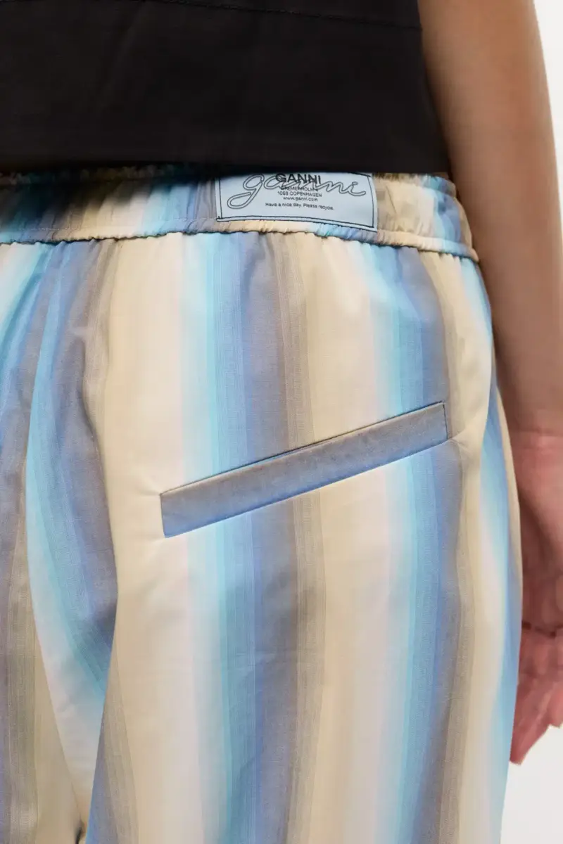 These trousers feature a multicoloured ombre stripe pattern with an elasticated drawstring waistband, 3 pockets and a GANNI logo patch at the back.