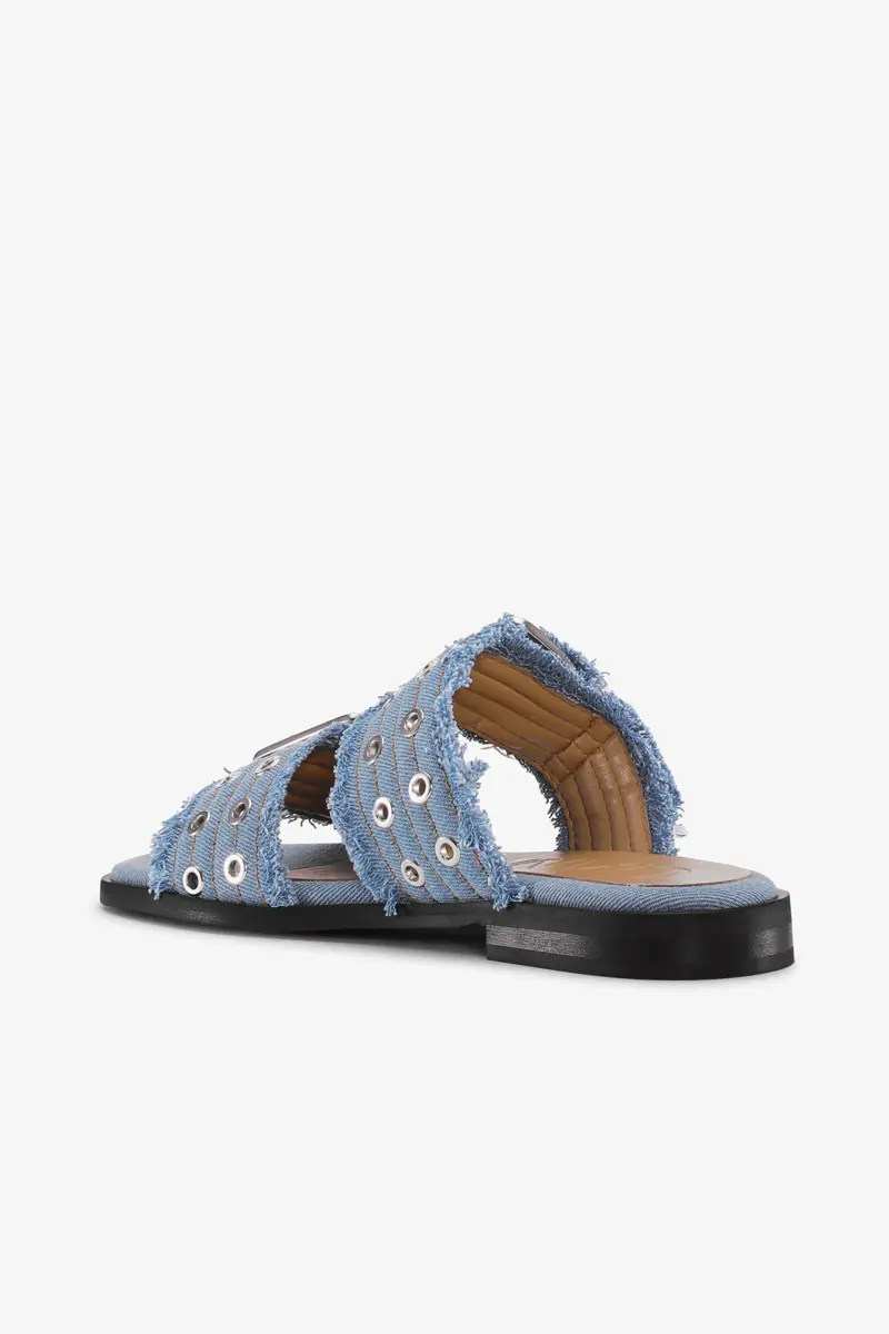 Feminine Buckle Two-Strap Sandals in Blue Denim