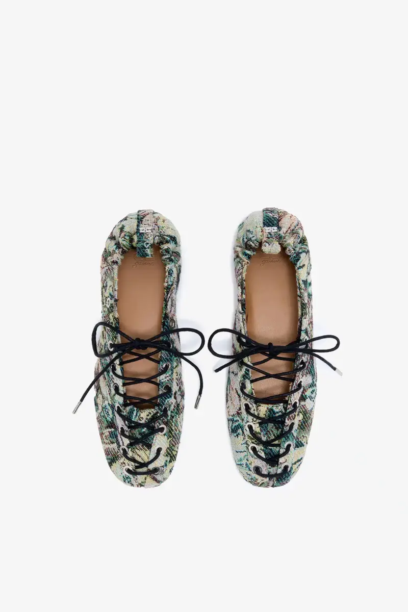 Inspired by 1920s lace-up boots, these Lace-Up Ballerinas build upon the legacy of our beloved Buckle Ballerina. These ballerinas feature signature metal eyelets and crossover wax lace